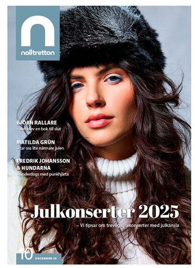 Musik – Fredrik Johansson & Hundarna - underdogs med punkhjärta. Sport – Kärleken till löpning är Carolina Johnsons drivkraft. Fridas Spalt – Frida får en käftsmäll av förklimakteriet? Resa – Vi besöker Manchester - Englands Norrköping. Inredning – Mathantverk och inredning hos Åkerbys gårdsbutik. Läsa – Det blev en bok till slut för Björn Rallare. Lite Jul – Hitta julstämningen på Östergötlands julmarknader. Krog – Ett mänskligare samhälle - ordnar stödgala på Palatset. Media – Julkalendern i Västervik med Inger Nilsson i rollistan. Kalendern – Ett urval av de saker som händer i Östergötland. Tills vi ses... Staden förvandlas åter till Vinterköping. NÄSTA NUMMER AV NOLLTRETTON KOMMER UT DEN 12/12 PRENUMERERA PÅ NOLLTRETTON Registrera dig här. Länk öppnas i nytt fönster.